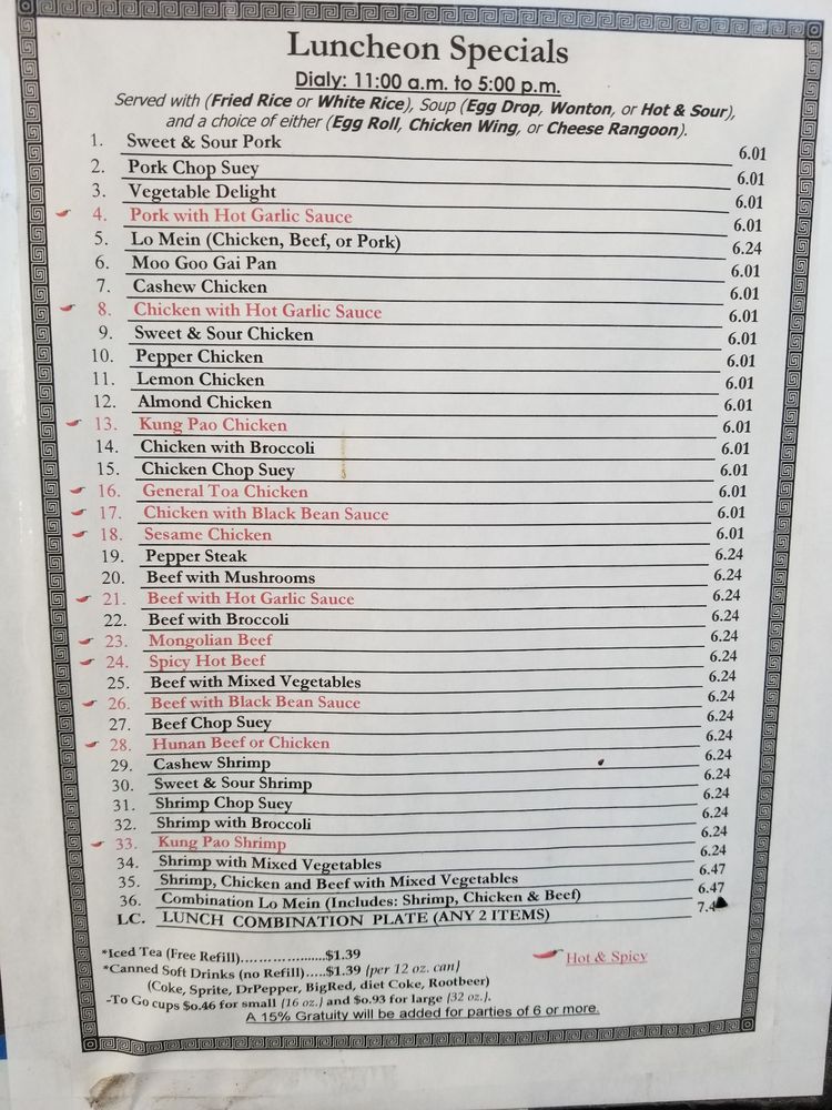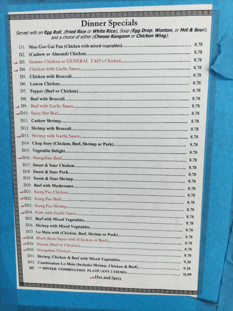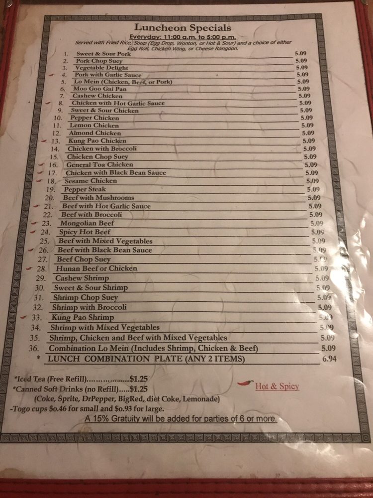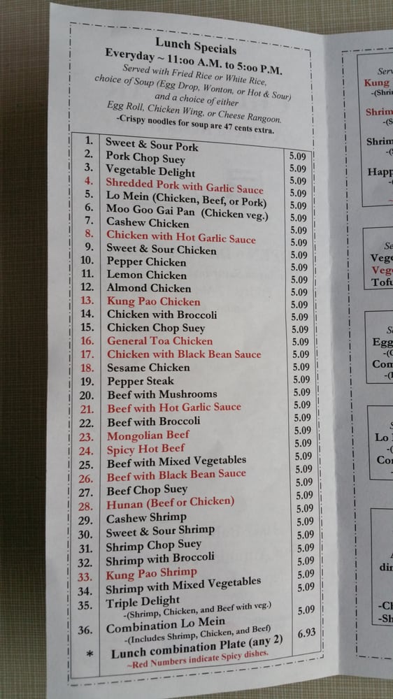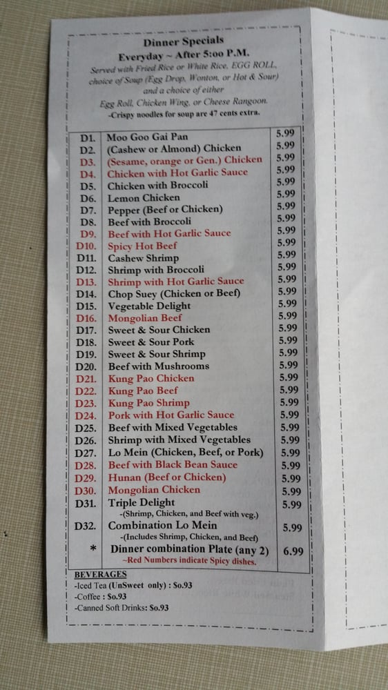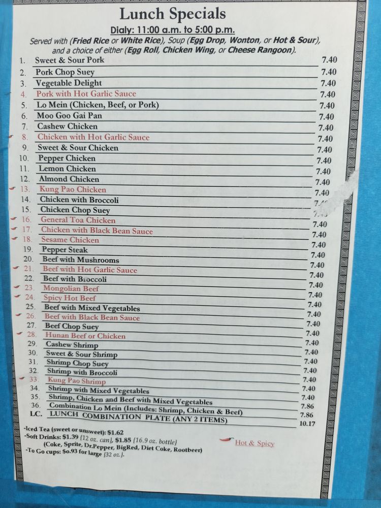 China Star Chinese Restaurant Menu