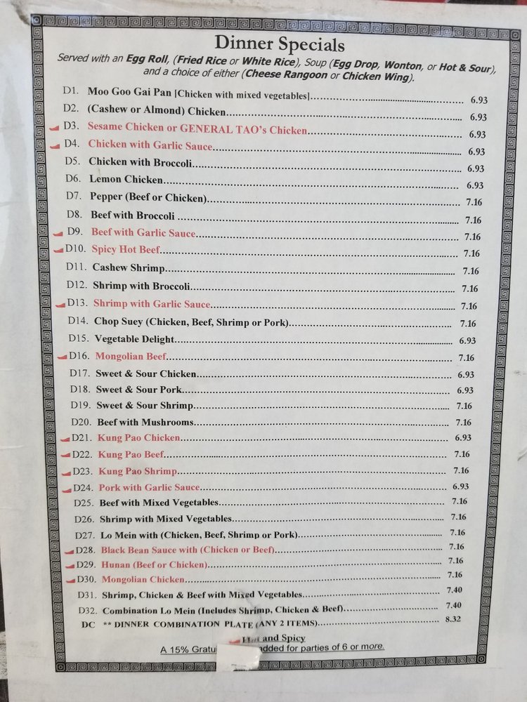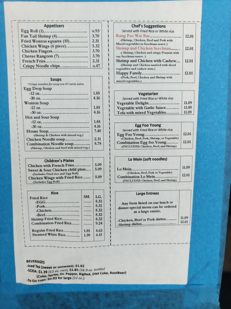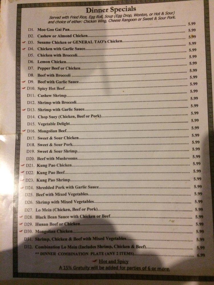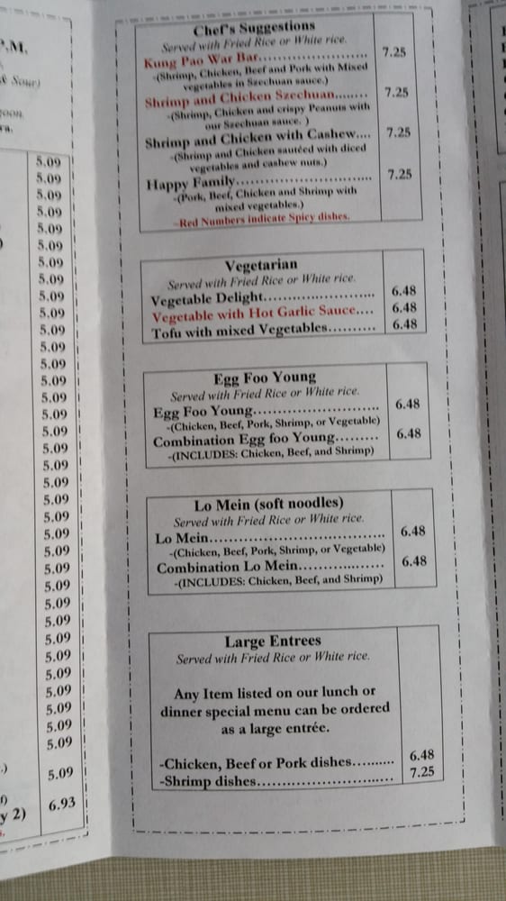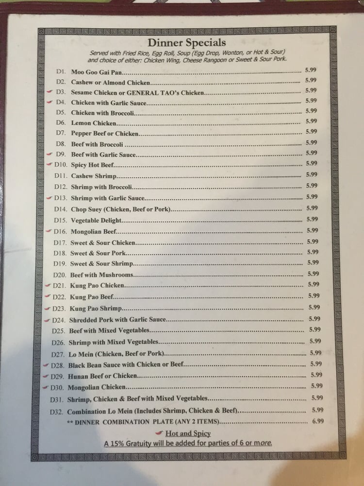 China Star Chinese Restaurant Menu